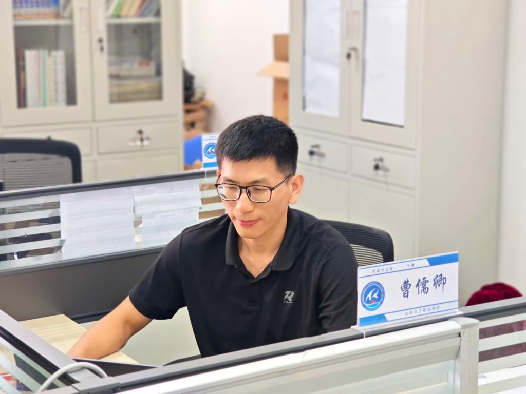 曹儒卿,中共党员,干事,负责法律事务的协调工作、会议及接待工作的筹备、信息公开、办公室日常考勤工作、固定资产的登记与管理、部门安全工作及临时任务。